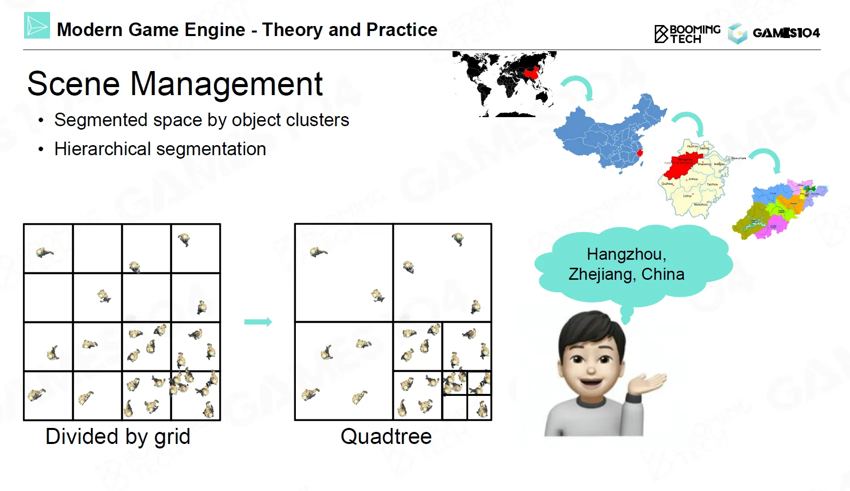 除了四叉树之外,现代游戏引擎进行场景管理时还会使用BVH、BSP、octree、scene graph等不同类型的数据结构。