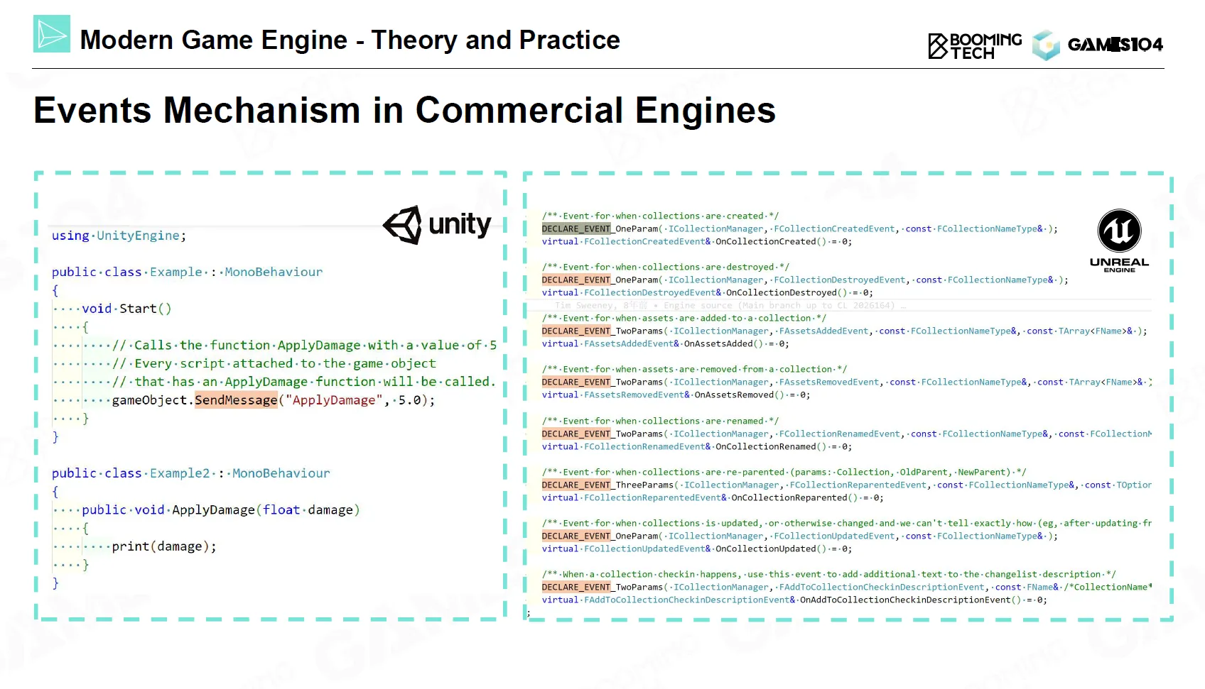 在商业游戏引擎中就使用了event机制来实现GO之间的通信。