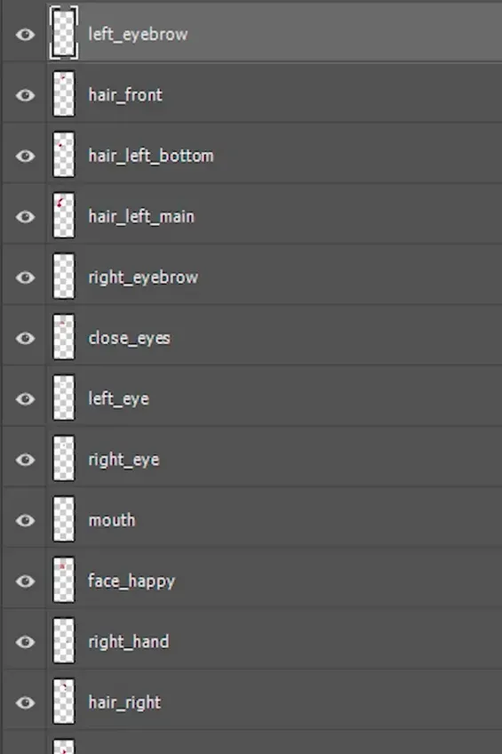 把需要动作的地方切出来(眼睛,手臂,嘴巴…),被遮挡的地方需要画笔补全
