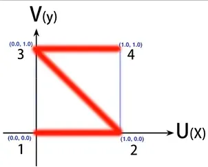 UVW”命名取自字母表XYZ旁边一组字母,与XYz坐标相似,UVW坐标中U代表水平方向,V代表垂直方向,W表示平面垂直方向。UV坐标被我们用来表示2D纹理的轴,取值范围[0,1]。