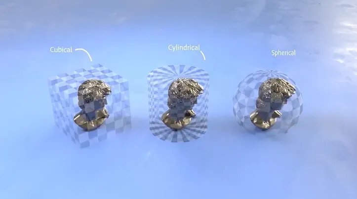 主要用于简单的几何形状,建筑的地板、墙壁将图案与纹理投影到几何形状上去