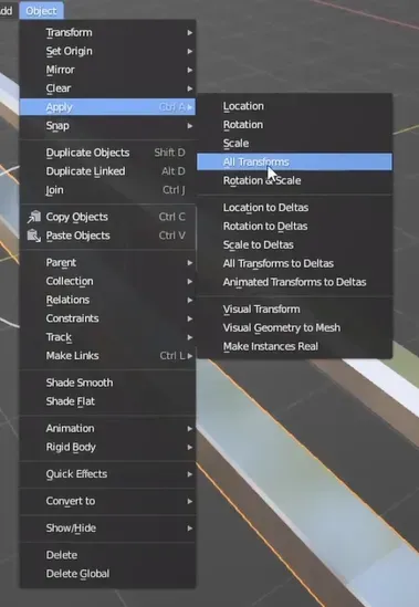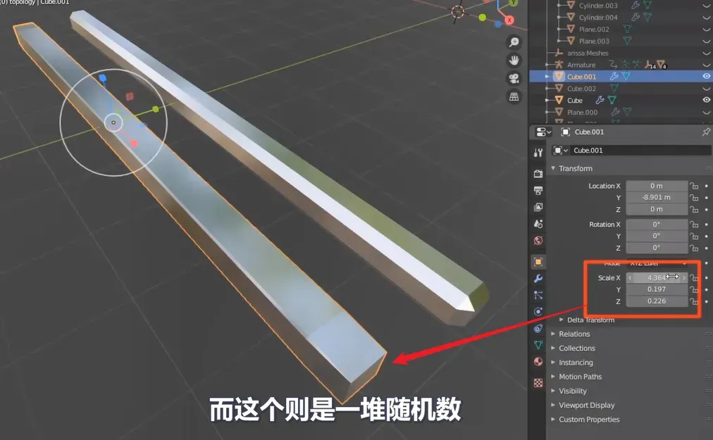 这两个物体都被缩放了,左边的未应用变换,右边的应用了变换